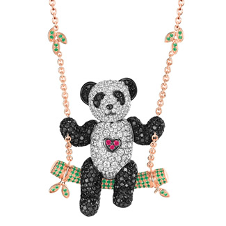 Globally limited “Large Je t'aime Bo Bo Necklace in 18K Rose Gold With Diamonds, Black Diamonds, Rubies And Green Garnet”